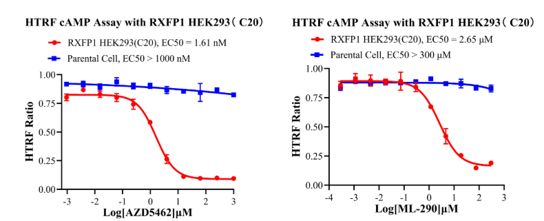 為助力RXFP1靶點(diǎn)藥物研發(fā),南京科佰開發(fā)了RXFP1 CHO、RXFP1 HEK293細(xì)胞篩選模型,產(chǎn)品驗(yàn)證結(jié)果如下: