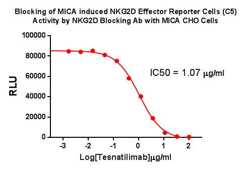 Figure 3. Blocking of MICA induced NKG2D Effector Reporter Cells (C5) Activity by NKG2D Blocking Ab with MICA CHO Cells.