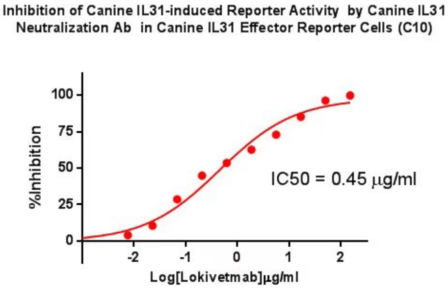Figure 4. Inhibition of Canine lL31-induced Reporter Activity by Canine lL31 Neutralization Ab in Canine lL31 Effector Reporter Cells(C10).