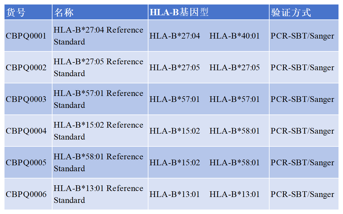 人類白細胞抗原HLA基因分型標準品