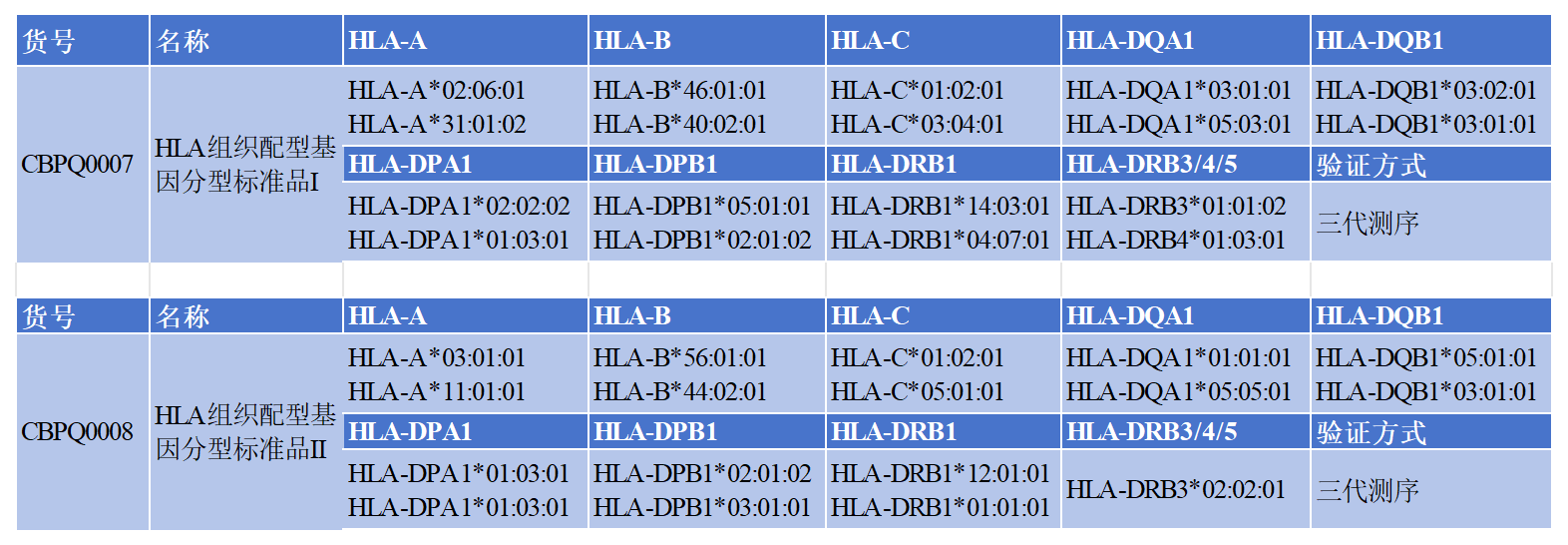基于市面上不同的檢測需求,科佰開發(fā)了可以用于HLA核酸檢測試劑盒開發(fā)、HLA基因分型檢測質(zhì)控的HLA標準品,包括①單一HLA位點基因分型 ②HLA配型多位點基因分型的核酸檢測標準品,涵蓋了中國常見等位基因和與HLA相關(guān)藥物指導檢測位點,供廣大客戶選擇。